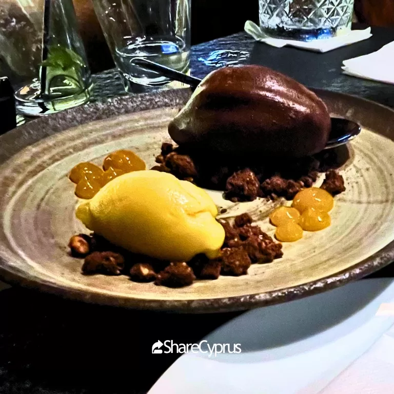 After finishing our main course, he offered us complimentary desserts. He seemed to like us! We explained to Costas that this wasn’t necessary, but in the end, we didn’t have a choice, as he had arranged for a dessert to be delivered to our table, and it was terrific!